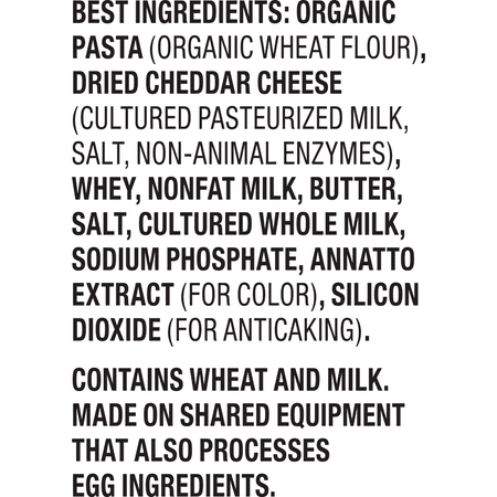 - Made from organic pasta and real cheese, dairy cows without rBST