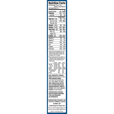 Orignal From: Anne's Macaroni and Cheese, Pasta and Classic Mild Cheddar Apple and Cheese, 6-oz. Box