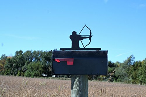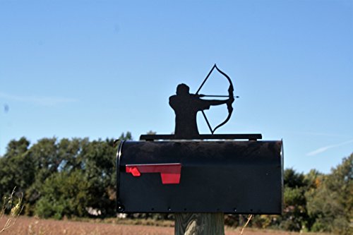 Archery Mail Box Hat Metal archery with bow and arrow bowler is cut from steel as thick as about nickel. The label bends to facilitate connection to the mailbox. This large mailbox topper is 14" wide and 8" high. It fits into a standard mailbox and looks great on a large box! The logo has been matte black for a long-lasting and durable finish. You need to drill two holes in the top of the box, so you need to use washers to prevent moisture from entering the mailbox. Your order contains hardware attached to your mailbox. The design of the mailbox hat allows you to connect it to a wooden fence or railing. The order includes a mailbox top and hardware attached to the mailbox. Order does not contain an email. All our products are 100% made in the United States and continue to be used. Notice more mailbox toppers come to our store!
