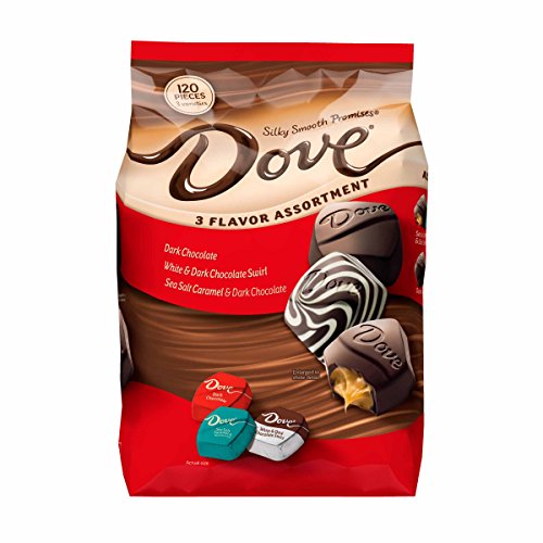 Experience the fun of combining DOVE PROMISES dark chocolate candy varieties. This chocolate mixes a variety of chocolates, including DOVE PROMISES smooth and smooth dark chocolate, DOVE PROMISES white and dark chocolate swirls and DOVE PROMISES sea salt caramel and dark chocolate candy packed in a bulk candy bag. Each mouth contains premium cocoa. Most importantly, each piece of individually packaged work has a special message that will make any chocolate fancier a better day. Contains (1) 34 ounces 120oz bagged DOVE PROMISES varieties mixed 3 flavored chocolate candy Category