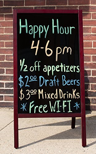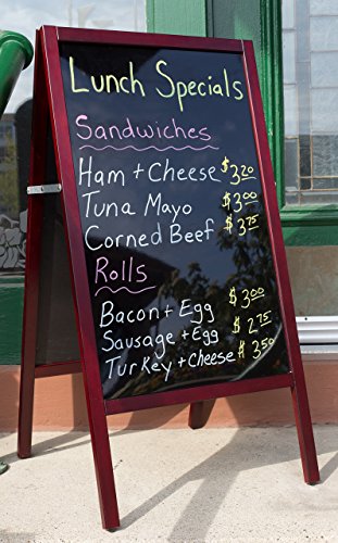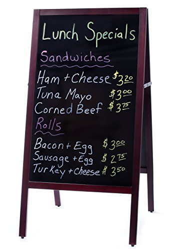 Orignal From: Large A-frame Blackboard Sidewalk Advertising Sign, Easy-to-Eraser Double-Writing Writing Surface | Outdoor sandwich menu board complete with classic mahogany finish. Includes eraser