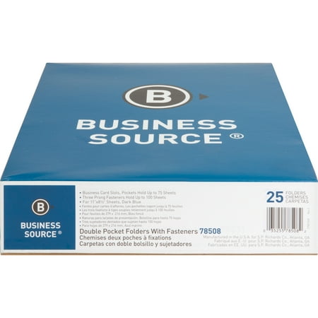 Orignal From: "Business Source Two Pocket Folder - Letter - 8.50" "X 11" " - 100 Sheet Capacity - 3 X Prong Fastener - 0.50" "Fastener Capacity - 2 Pockets - Leatherette - Dark Blue - 25 / Box(BSN78508)"
