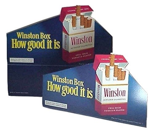 Winston Box - how good it is. A lightweight cardboard countertop display for Winston Cigarettes in 1972. Renault's best-selling brand. 11" wide x 6.25" high. The original surgeon's warning. "WARNING: Surgeon has determined that smoking is hazardous to health, in good condition, transport is smooth, unassembled, width 11.4 inches x height 6.25 inches