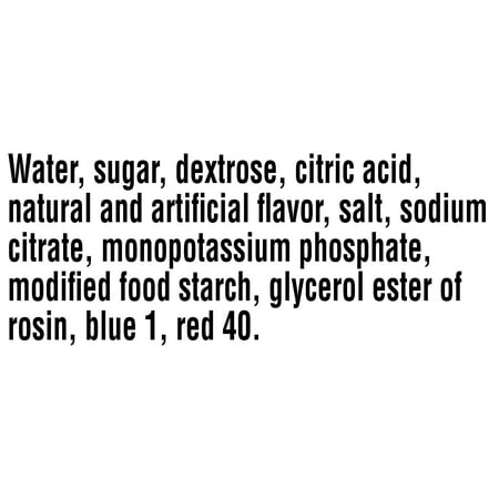Gatorade: Fierce Thirst Quencher Grape Sports Drink, 32 fl oz: Natural and Artificial Spices Gatorade Sports Beverage Filling and Supplementing Ways Water does not supply deep blue grape flavours to higher levels of sugar and carbohydrates Low sodium and calories