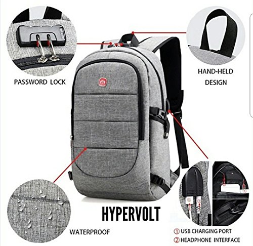 Orignal From: HYPERVOLT anti-theft USB charging port laptop backpack, TSA lock protection and waterproof function, suitable for business, school and travel protection