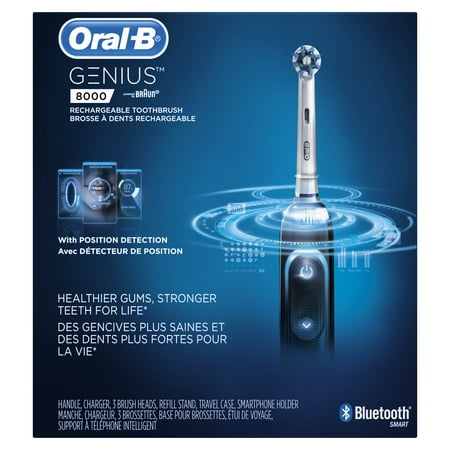 Orignal From: Oral-B Genius 8000 (25 USD discount) Electronic rechargeable toothbrush with Bluetooth connectivity and travel case with 3 CrossAction brush heads, powered by Braun