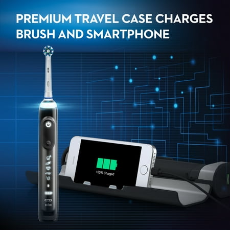 The Genius 8000 is Oral-B's most advanced electric toothbrush. Genius is equipped with location detection technology that uses smartphones and facial recognition technology to give you real-time feedback on brushing habits. Using the Oral-B app to seamlessly pair your Genius with your smartphone, you can brush your teeth just like a dentist suggests. The 360 SmartRing with LED lights allows you to personalize your brushing experience based on the 12 colors you choose. SmartRing works with an integrated timer and pressure sensor to give you visual feedback of brushing time and brushing pressure. Together, they help you to ensure that you scrub within the recommended 2 minutes while ensuring that your teeth are brushed with the proper pressure to prevent excessive gum brushing. The quality smart suitcase allows you to charge your brushes and smartphones (via USB) while using a wall outlet.