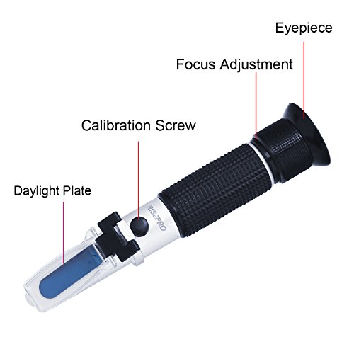 Orignal From: Refractometer, RISEPRO Household Brewing Alcohol Hydrometers Dual Sugars 0 to 32% Wort SG 1.000 to 1.120 Specific gravity Sugar Wine Beer Juice Fruit Grass (aluminum)