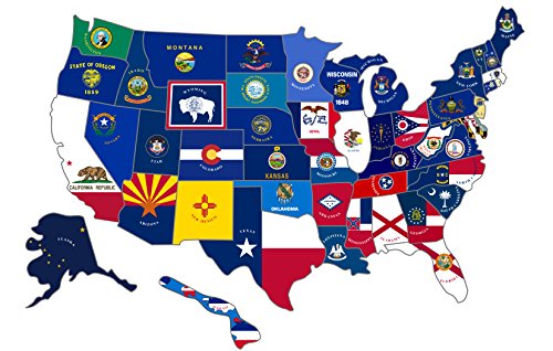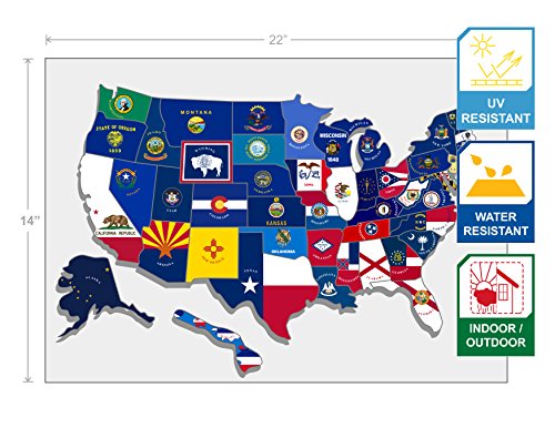 Multifunctional - In addition to tracking your journey. This unique approach can be used in homes and classrooms to get children to know each state flag and its history. Suitable for windows or walls; will not damage the surface. Simply strip and paste the status to where they are respected on the map. Easy to clean