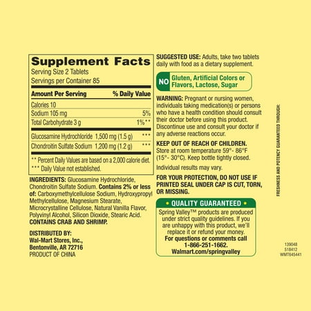 Orignal From: Spring Valley Glucosamine Chondroitin Tablets, 1500 mg, 170 Carats, 2 picograms