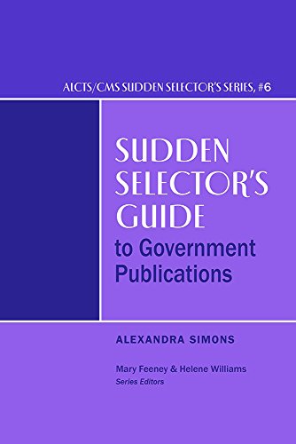 Sudden Choice of Government Publications Guide - Books/Professional Development - Academic Librarian Books - Public Librarian Books - New Products - ALA Which government agencies have the information you need to help your customers? How do you find out the range of available government resources? What do you need to know about the Federal Depository Library? Access to government information is essential to researchers in all disciplines and is more important to informed citizens than ever before. Alexandra Simmons's sudden selection guide is the starting point for you to understand the government press and the Federal Depository Library program, how to manage and promote your collection of government documents, and where to find the best sources of online government resources. This guide is applicable to librarians of any type of library, both for the development and management of collections and for reference purposes.