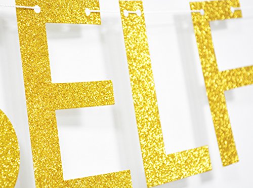 Includes: 11 Pcs gold glitter letters cardstock ,1 white ribbon, come separately.you need to string them together yourself.