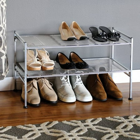 Seville Classic 2-tier iron mesh utility shoe holder, chrome plated
